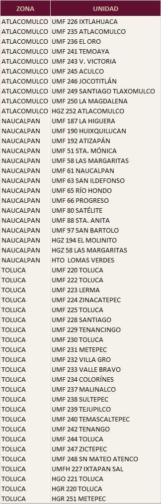 * Unidades Médicas por Zona *